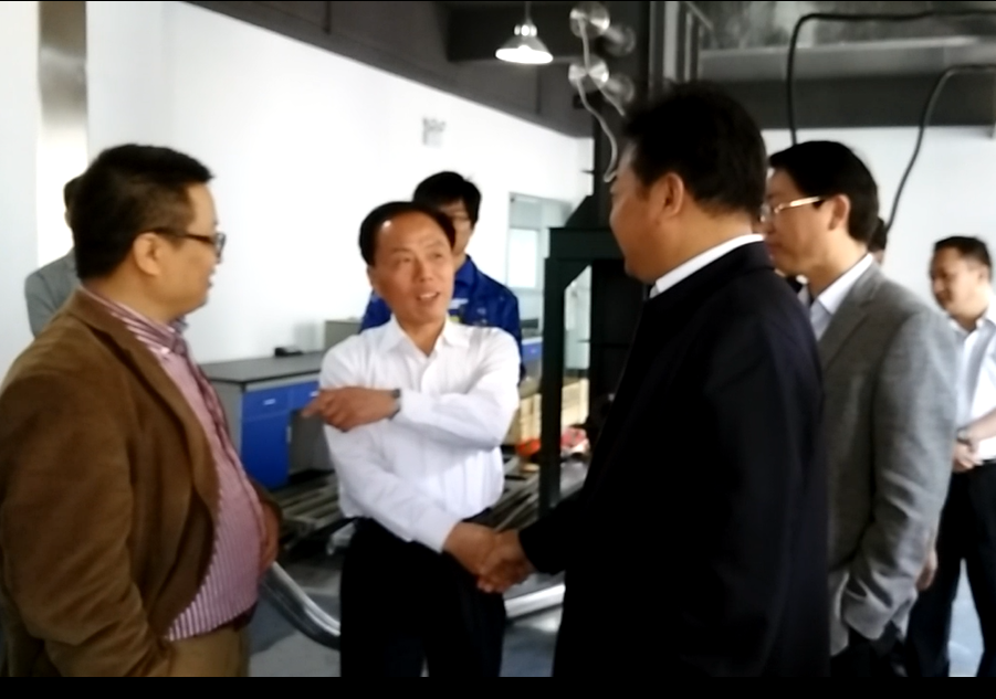 2015年5月13日上午,中共海安縣陸衛東書記帶領縣委縣政府部分領導視察了我司在國家高新區的研發中心,董事長吳龍鐵先生作了工作匯報,陸書記對我司與中央“千人計劃”專家姜興茂團隊共同研制開發的納米銀技術給予了高度的贊揚。如(圖一、圖二)