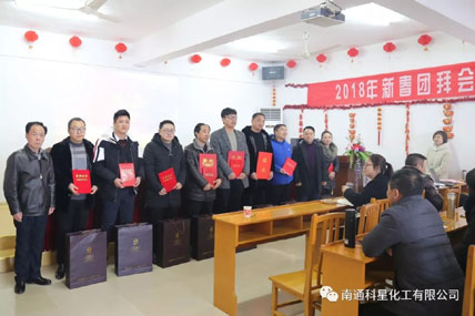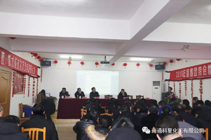 白甸鎮黨委副書記、鎮長許栩親臨年會現場致賀辭。集團董事長吳龍鐵先生、科星公司總經理傅士超先生等領導與會做報告。傅總經理對上年度工作進行了務實的總結,表彰了工作表現優秀的員工。吳董事長展望2018年度預期銷售目標達到2億元,制定了2019-2023年五年規劃:科星化工實現銷售收入5億元,江蘇科星新材料集團累計銷售收入10億元,爭取創業板成功上市。