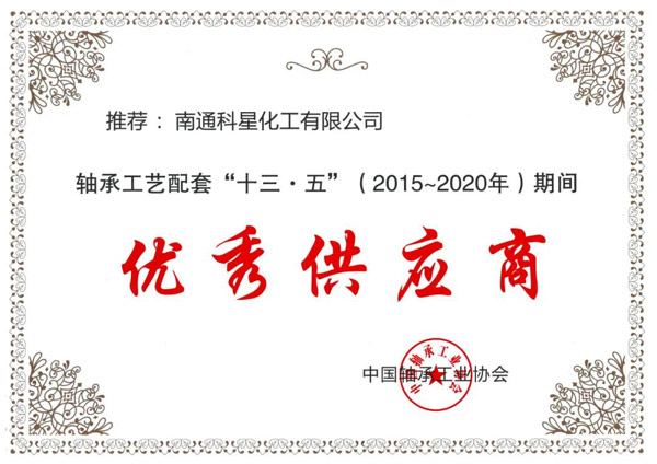 南通科星化工有限公司喜獲中國軸承工業(yè)協(xié)會“工藝配套優(yōu)秀供應(yīng)商”稱號