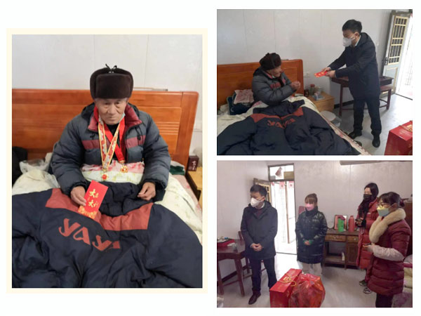 新春將至、歲寒情深。為表達對革命老兵的敬意之情,2023年1月9日,南通科星化工股份有限公司執行總裁吳曉強帶領公司副總經理劉小燕、工會委員邰俊華、汪小麗專程來到墩頭鎮曹莊村8組革命傷殘軍人顏夕林家中,向這位革命老兵送上慰問金和慰問品,同時致以新年的祝福和問候。