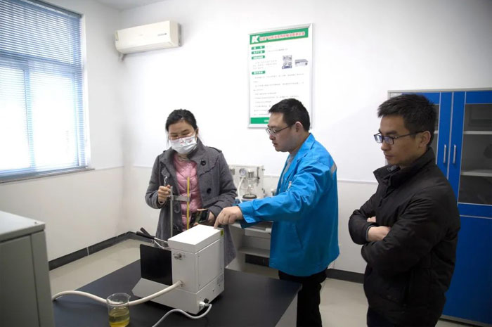 考察組一行首先參觀了科星總部研發中心,技術副總王凱華向考察組介紹了公司實驗室六大事業部和油品相關儀器設備的相關情況。