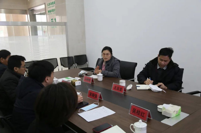 考察組一行經過現場調研考察后,來到科星生產基地會議室與各部門負責人進行對接交流,查閱相關資料。