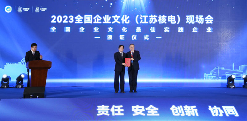 本次現場會由中國企業聯合會、中國企業家協會主辦,中國核能電力股份有限公司承辦,江蘇核電有限公司協辦。會場近百名來自全國各地的企業文化領域專家學者和嘉賓共同見證江蘇核電有限公司摘獲“全國企業文化最佳實踐企業”稱號。