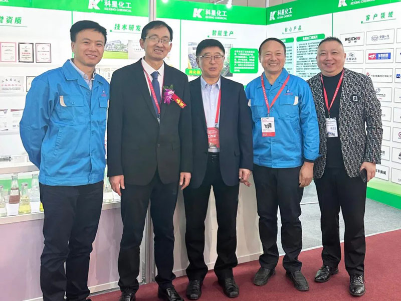 中國(guó)內(nèi)燃機(jī)工業(yè)協(xié)會(huì)副秘書長(zhǎng)沈彬(左二)、中國(guó)內(nèi)燃機(jī)工業(yè)協(xié)會(huì)綜合管理部遲海濤(左三)蒞臨科星展位交流并與科星執(zhí)行總裁吳曉強(qiáng)(左一)、銷售經(jīng)理申遠(yuǎn)俊(右一)、蔣忠余(右二)合影留念