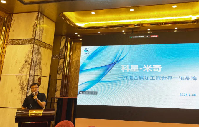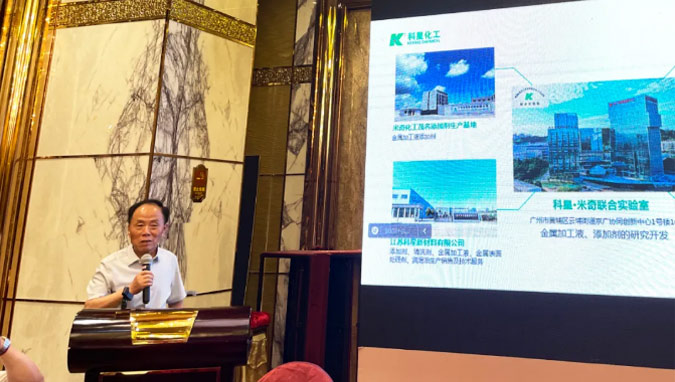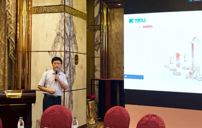 會議現場,廣州米奇化工有限公司總經理、科星•米奇聯合實驗室主任李少林親自主講,帶來了題為《國際、國內行業勢分析及給科星帶來的發展新機遇》的專業報告,現場掌聲連連。
