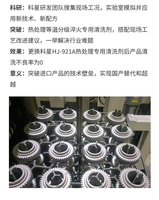 解決熱處理工藝清洗難題,爭做國產替代行業典范——科星HJ-921A重油垢清洗劑
