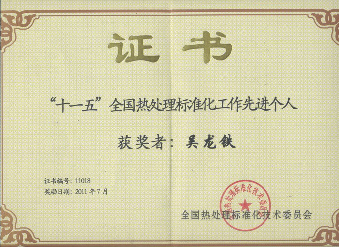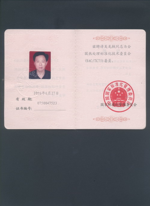7月27日-8月1日,吳總在貴陽參加了全國熱處理會議。吳總被評為“十一五”全國熱處理標準化工作先進個人,同時繼續被聘請為全國熱處理標準化技術委員會(SAC/TC75)委員。