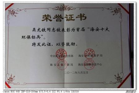 吳總被評(píng)為“海安十八環(huán)保標(biāo)兵”!